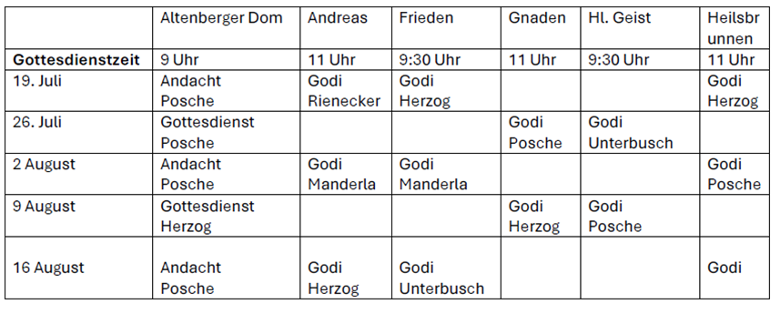 Gottesdienstversorgung in der Region während der Sommerferien